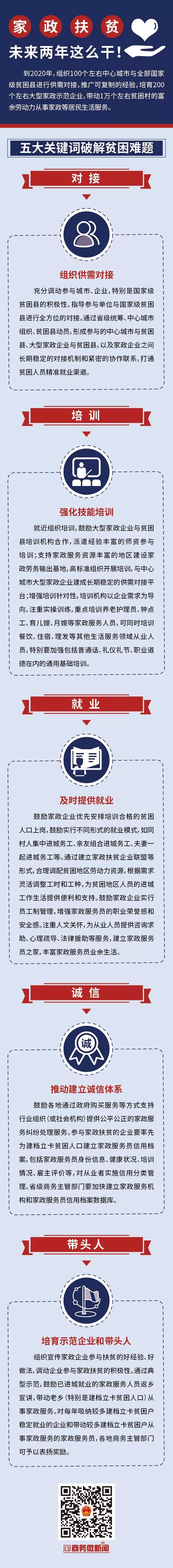 近日,商务部印发《商务部、发展改革委、财政部、国务院扶贫办、全国妇联关于全面推进“百城万村”家政扶贫工作的通知》,一图看懂家政扶贫怎么干↓↓