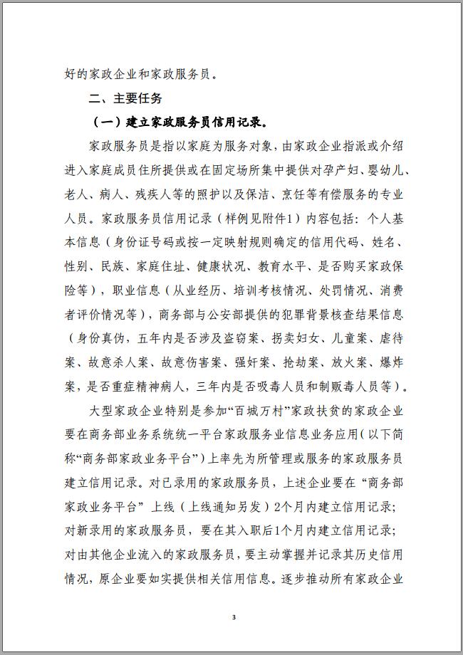 商务部、国家发展改革委印发《关于建立家政服务业信用体系的指导意见》